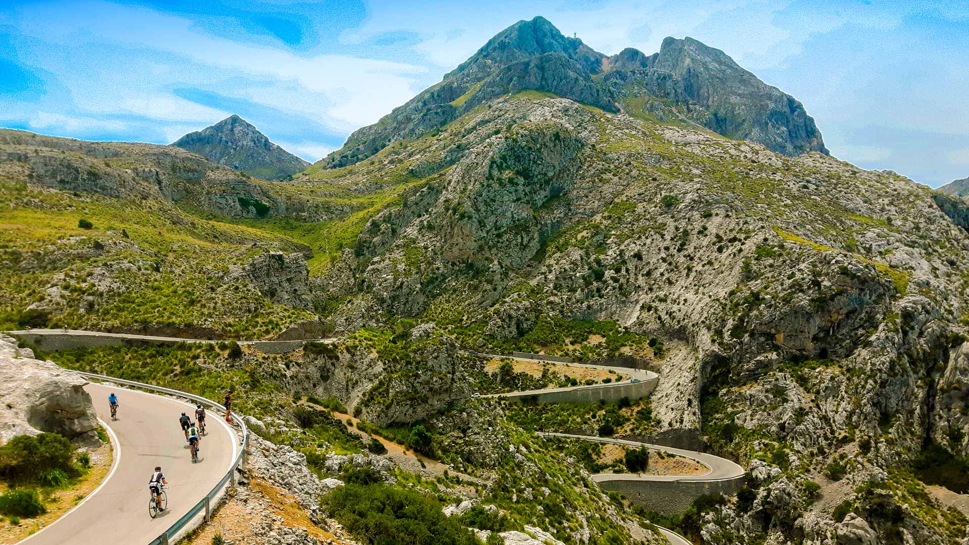 Profitez d’un départ relativement plat les premiers kilomètres, suivi du col de Sa Batalla, l’une des trois ascensions cyclistes les plus célèbres de Majorque dans les montagnes de Tramuntana avec une montée de 7,9 km et une pente moyenne de 5 % avec de nombreux lacets. Rejoignez-vous tout en haut, à votre vitesse bonheur, pour une pause bien méritée et des sourires à profusion autour d’un café et d’une pâtisserie. Par la suite, vous aurez une vue impressionnante lors de votre descente qui restera gravée en mémoire. PD/S